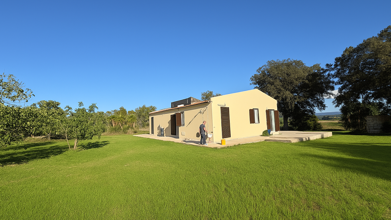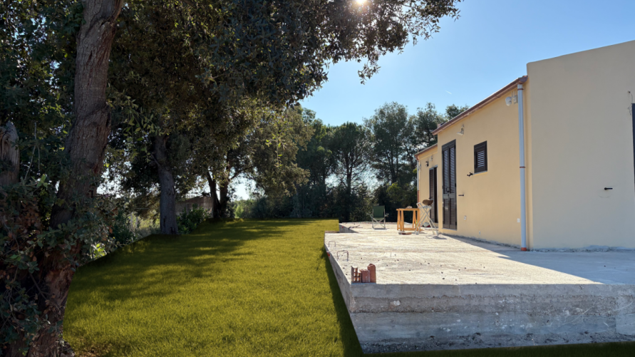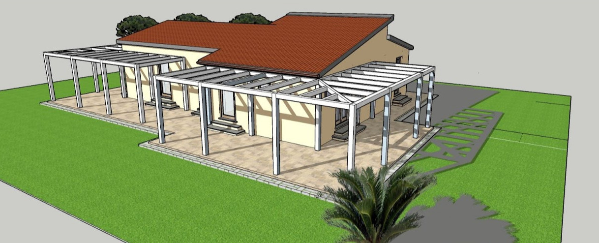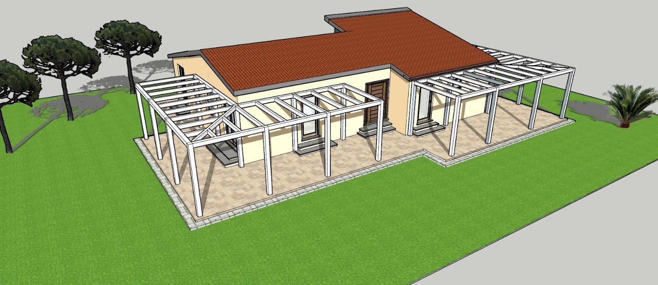 Il patio è da portare a termine così come le verande/pergolati Foto ritoccata da GPT aggiungendo SOLO l'erba in primo piano. |