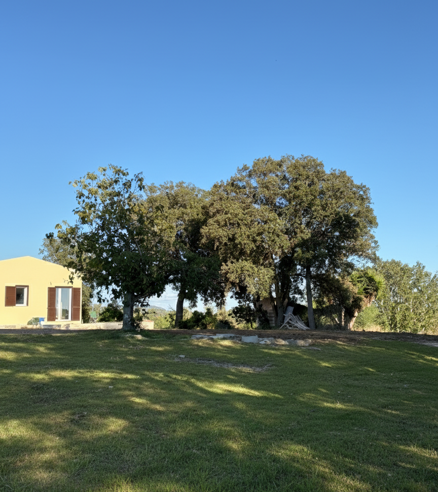 Vista su giardino e terrazzo da nordFoto ritoccata da GPT aggiungendo SOLO l'erba in primo piano. |